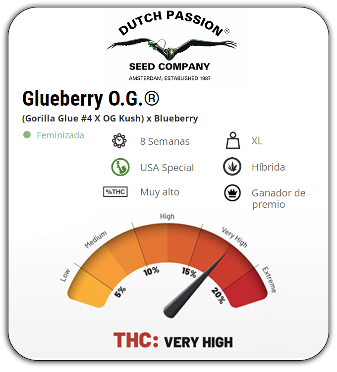 Enlace a la info de la Glueberry O.G. en la web oficial de DutchPassion