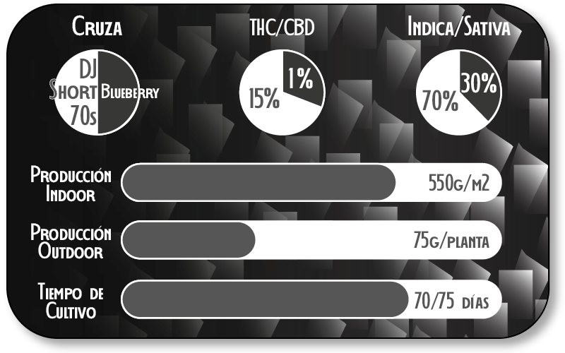 Capítulo aparte merecen el sabor y las fragancias, que condensan notas dulces de arándano junto con un final cítrico. Apreciada en su conjunto, la BlueBerry es un festival sensorial: el violeta exaltado por el brillo de los abundantes tricomas, el olor afrutado y, al fumarla, su estimulante efecto mental que al instante se conjuga con el disfrute de la relajación corporal.