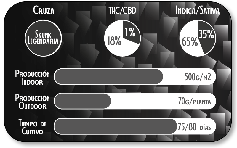 A la vez, por su alta estabilidad, fue la base para crear gran parte de las distintas genéticas que conocemos hoy día. Ningún cultivador experimentado la desconoce. Los matices típicos de una Skunk son dulces y frutales, junto con un ligero picor. Su efecto presenta un rápido despegue de la experiencia sensorial para luego entrar en la "zona Skunk", territorio híbrido entre la euforia y la calma.